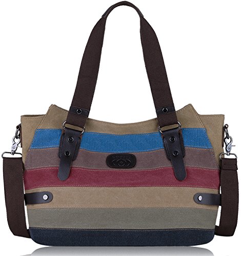 -. Title : Coofit Canvas Handbags Striped Tote Bag Top Handle Shoulder Bag Hobo Cross Body Bag for Women