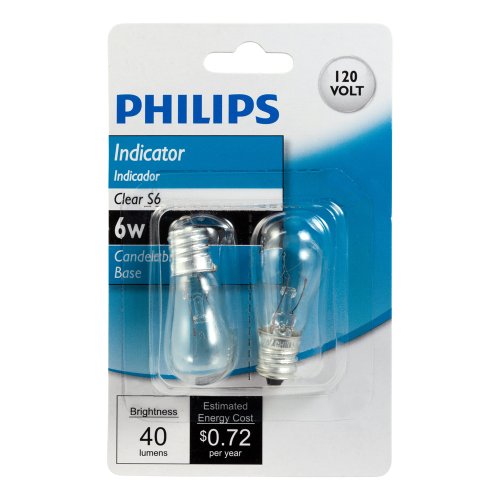 Philips 416693 6-Watt S6 Candelabra Base Indicator Light Bulb, 2-Pack