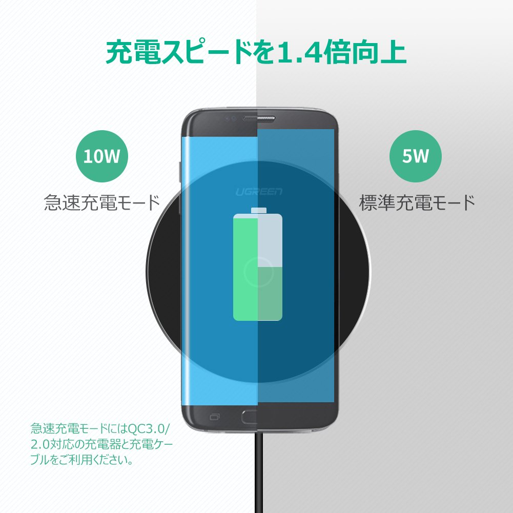 It complies with the QC 2.0 rapid charging protocol and it is up to 1.4 times faster than the conventional wireless charger according to the QC 3.0 / 2.0 compatible AC adapter.