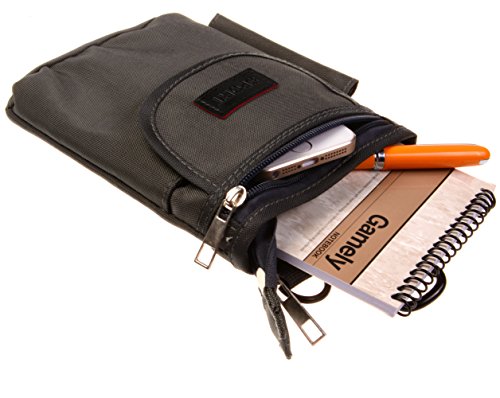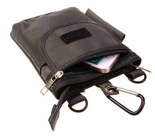 - Feature : Compatible with iPhone5/5S/5C iPhone4/4s Samsung Galaxy s5/Note3/Note2/S4/S3/HTC and Other Mobile Phone / Size: 7.5(L)inch * 5.5(W)inch * 0.5(TH)inch / High quality tough and soft nylon material; Two pockets inside, which can hold money, credit cards and all model of cellphones.Extreme overall back and front protection keep your phone from drops and scratches / The classic zipper closure can close this pouch very well, which also makes the whole pouch very convenient and safe / A carabiner is attached to the top of the bag in the back together with an belt fastener, so it can be hanging on the handbag,shoulder bag or waist belt