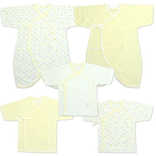 -. Title : 新生児肌着5点セット水玉柄(短肌着3着,コンビ肌着2着)・日本製 クリーム