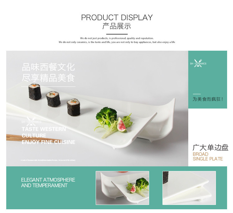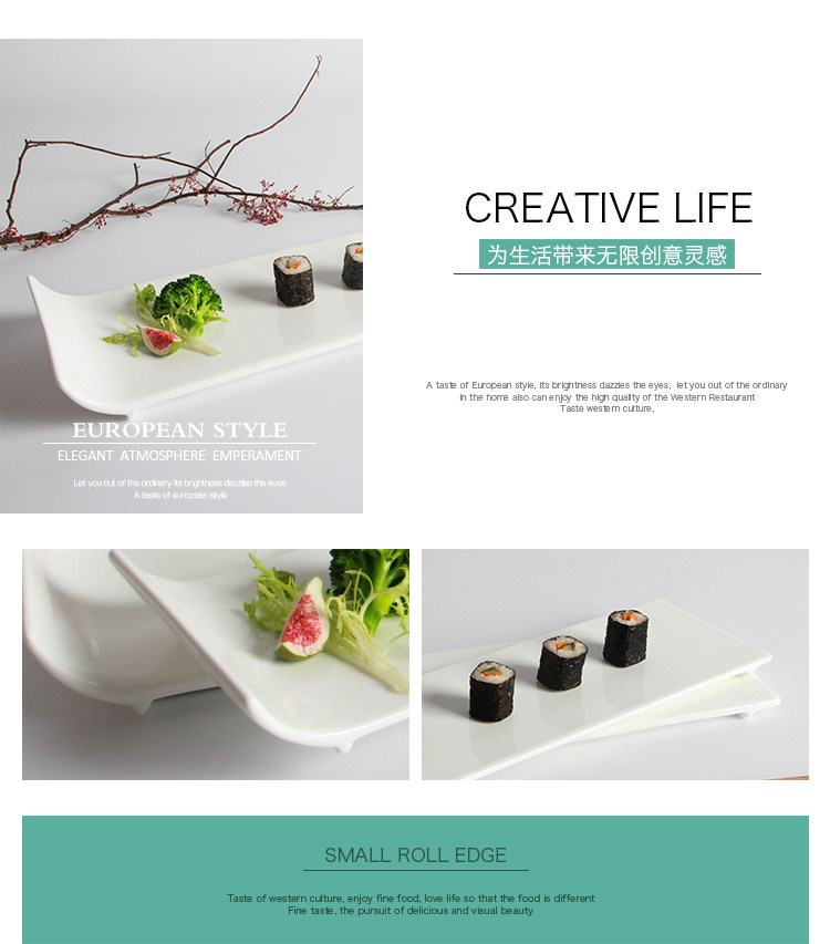 陶瓷长方平板甜品盘平盘鸡翅海鲜寿司摆盘蛋糕盘西餐盘装点盘子