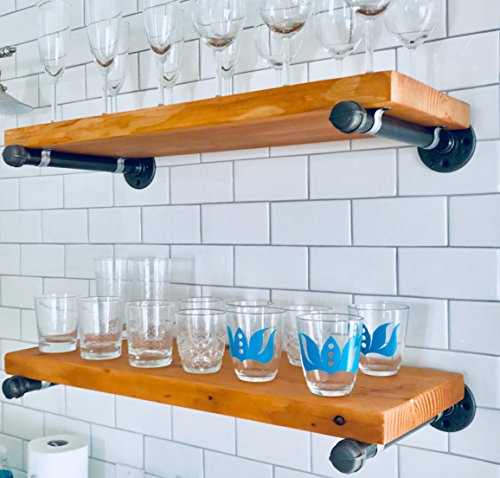 9 Inch Industrial Pipe Shelf. THIS SET COMES WITH: 2 FLOOR FLANGES, 2 PIPES THREADED TO FIT THE FLANGES and 2 CAPS (3/4 inch pipe fittings). WOOD NOT INCLUDED. You can create and customize any kind of shelf with this set. As seen on restoration hardware but a fraction of the price. The pipe is straight from the factory and is heavy duty.