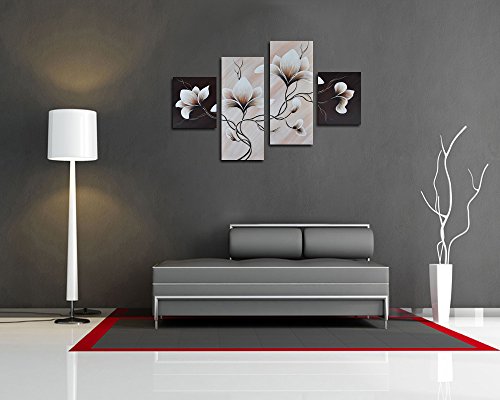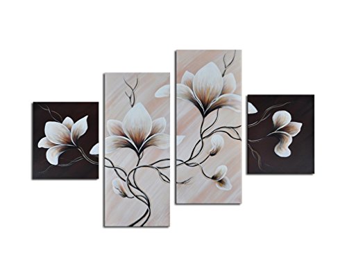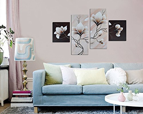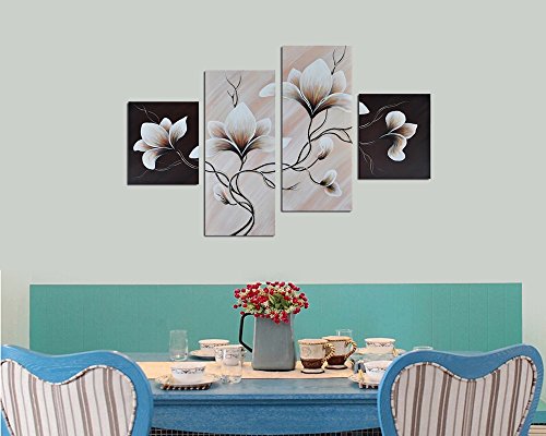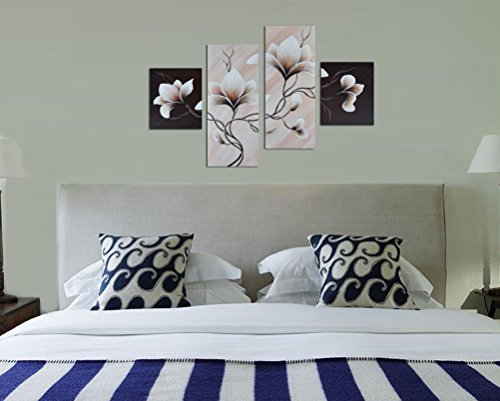 -. Title : Noah Art-Modern Flower Paintings, 100% Hand Painted Stretched Floral Wall Art On Canvas, 4 Piece Set Framed Flowers artwork for Bedroom Wall Decoration