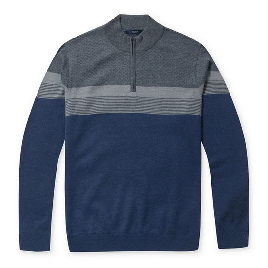 - 배색의 블럭과 자수를 적용한 남성 니트.