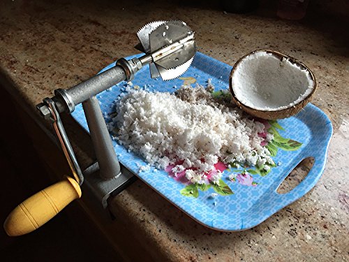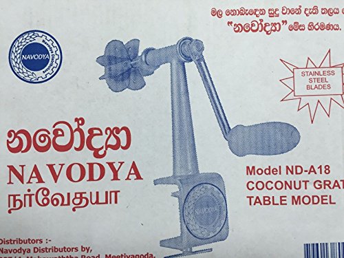 Studio : Navodya Publisher : Navodya Product Description This Coconut greater is specially designed to the USA market. Heigh quality stainless steel blade can extract fine coconut scraps. Improved clamp system will fit to Granite counter tops as well as any other tables. The Coconut Grater makes fresh, moist coconut from fresh coconuts . This is a perfect kitchen utensil for making fresh coconut recipes. It is a table mount model that clamps to any flat work surface. You can grate one coconut in less than five minutes. 0