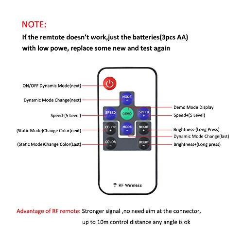 - MULTI MODE&COLOR CHOICE:The latest led battery lights design with 20 dynastic mode switch by keys “MODE+””MODE-”,20 static mode switch by”COLOR+””COLOR-”,and the the speed of the dynamic mode,and brightness can be adjusted by keys”SPEED””BRIGHT”,Create a dynamic and romantic atmosphere at the party,holiday,wedding,ONE remote both control the USB TV backlight and battery powered led strip lights
