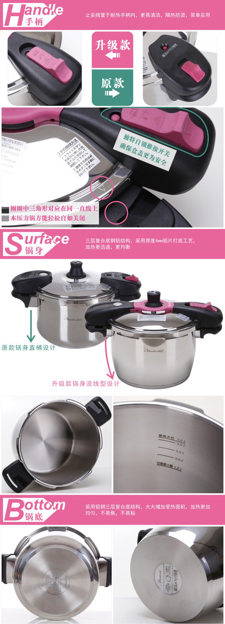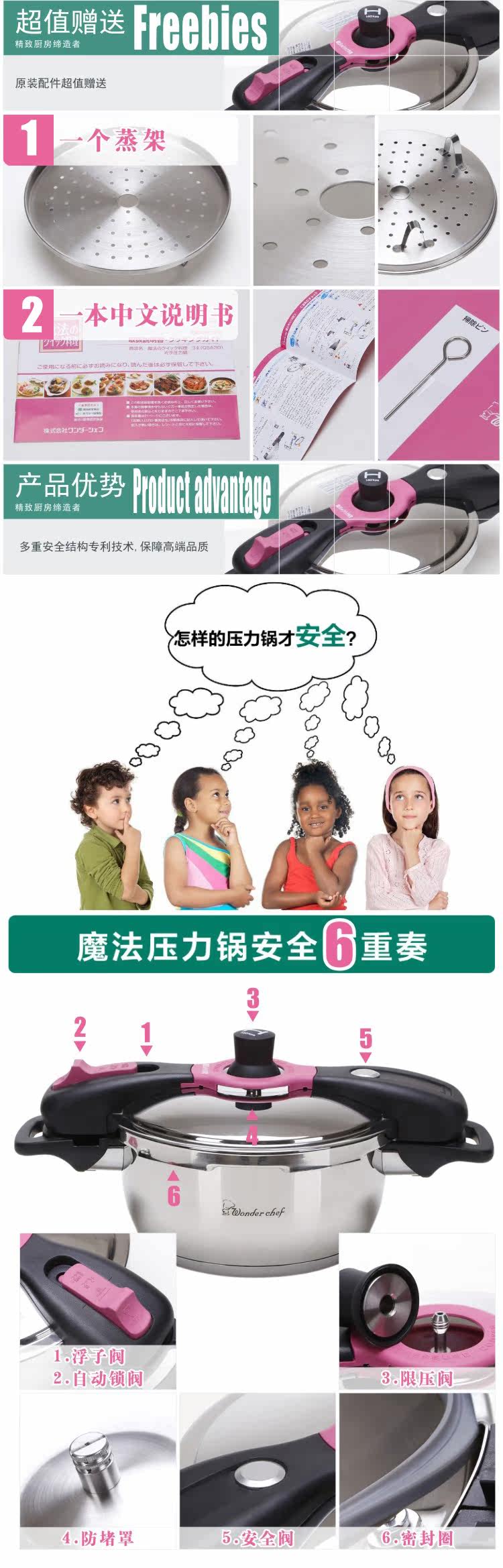 Brand: wonderchef GW: 2.8KG Color Classification: Pink Diameter: 22cm Material: 304 stainless steel Suitable for: Gas cookers General Origin: China mainland Depth: 15CM