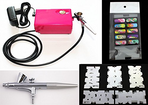 Ebest Multi-purpose Airbrush Nail Art System Compressor W/ 5PC Random Airbrush Stencil Templat