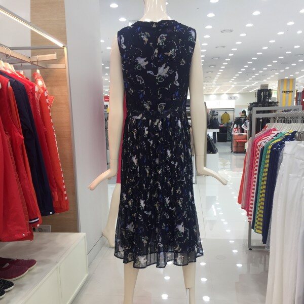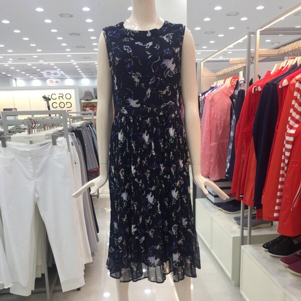 조직감 있는 폴리 소재에 멀티 패턴을 프린트하여 시원함을 살린소재로 스커트 주름을 잡은 멋스러운 썬 드레스 아이템.