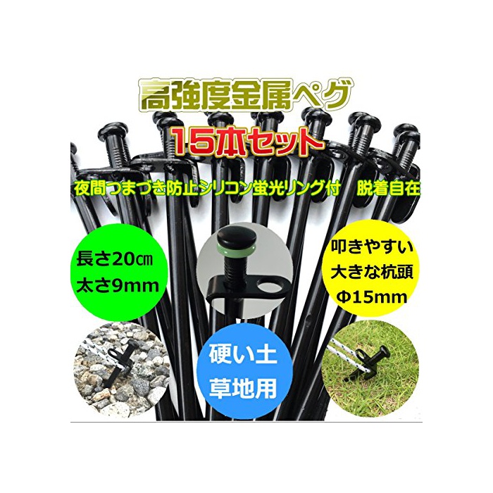 원본상품명: ペグ 20cm 15本セット / 硬い土 草地用 ペグ / φ9mm 20㎝15本セット / ペグ ステ?ク テントペグ タ?プペグ ペグセット