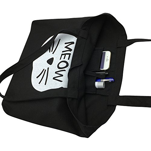 -. Feature : Stylish shoulder bag with cute cat face P.R.Int design. / Material: 100% soft cotton canvas. / Approx Dimensions: 16" x 15" (flat) with 10" strap drop.Easy to clean: hand wash cold, hang dry. / Multiple purpose bag with 2 inside pouches;1 mian compartments;1 interior pouch. / Perfect for day trips, vacation, travel, day hikes, school, office, beach, camping and shopping.