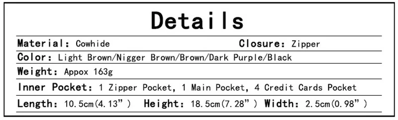 Interior:Zipper Poucht,Cell Phone Pocket,Coin Pocket,Card Holder,Note Compartment