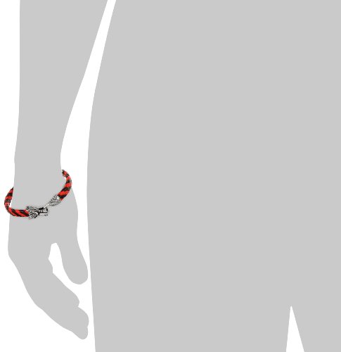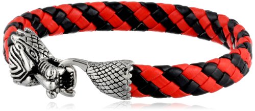 - Title : Men's Red and Black Leather Braided Stainless Steel Closure Bracelet, 3"