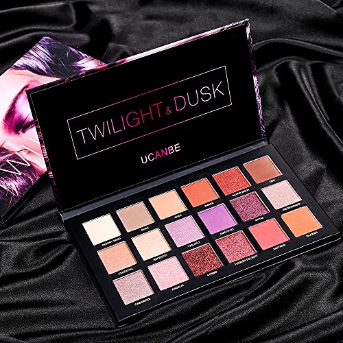 - UCANBE Twilight & Dusk Eyeshadow Palette is picked with 18 unexceptionable shades which made from smooth and velvety texture powder, includeing 8 buttery mattes,6 pressed pearls,3 duo-chrome toppers,1 daring glitter.
