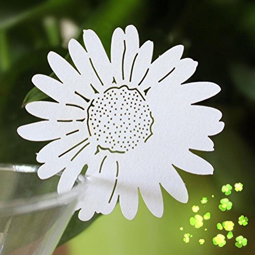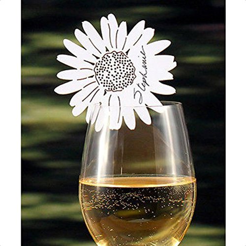 Tinksky Table Name Place Card Daisy Flower Style for Wine Glass Wedding Party Decoration,Pack of 50 (White)