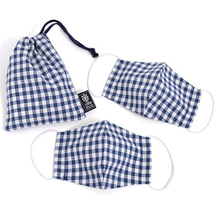 -. Title : ゴキゲンおしゃれなmyマスク(2枚セット・ケース付き) チェック大・紺 日本製 N5307200