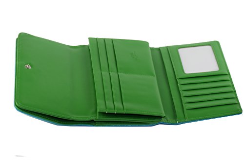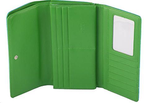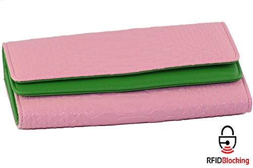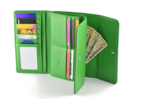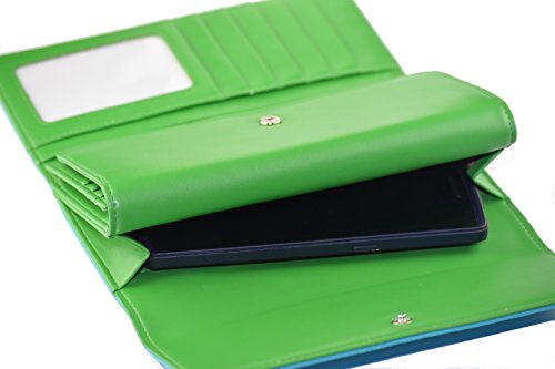 -. Feature : RFID Blocking Complete Security, protect your Credit Cards, Debit Cards, ID Cards from electronic pick pocketing Every Slot Shielded. 100% Mental Satisfaction and Guaranteed Security / HUGE STORAGE - Dual Compartment Eleven credit card slots, ID slot Six larger pockets, and double snap closure with double button at the front / Multi Color super cute .Top Quality Synthetic leather; lightweight, durable and fashionable Design Extra Ordinary Capacity. / Designed to hold Cash, Cards Check Book and other little things,you can simply hold it on hand or put it in bag. / Seems two wallets merge into one but capacity of two. Wallet Size: 7.5" x 4.0" x 1.25".