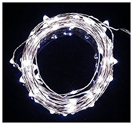 - Pure white LED lights strings, along 35 ft of ultra-thin copper wire, (4 mm in diameter) are copper color. The copper wire has a lacquer coating that makes the whole strand of lights water resistant, though is preferable not to soak them in water. The copper wire lights can stay outdoors on a rainy day, provided that the power adapter is protected with a plastic cover. The LED String IP-65 is impervious to dust. These starry lights on copper wire do not break easily