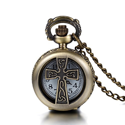 -. Title : JewelryWe Vintage Cross Pocket Locket Watch Quartz Movement White Dial Arabic Numeral Chain Full Hunter Design