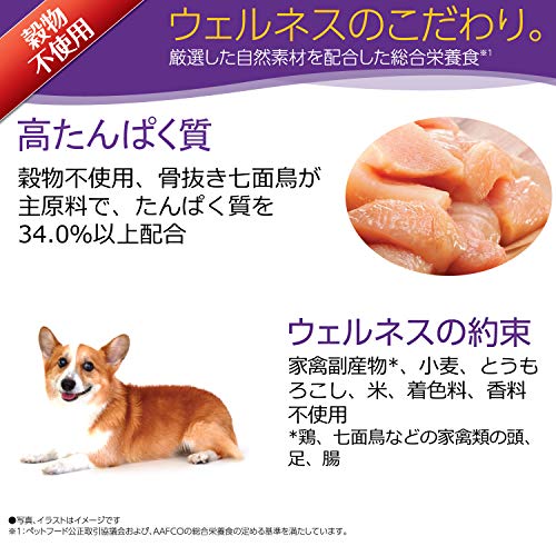原材料:骨抜き七面鳥、七面鳥ミール、チキンミール、えんどう、乾燥粗挽きじゃがいも、えんどう繊維、粗挽き亜麻仁、トマトポマス、鶏脂(ミックストコフェロールで酸化防止)、チキンエキス、サーモン油、スペアミント、ブロッコリー、にんじん、パセリ、りんご、ブルーベリー、ケール、ほうれん草、チコリ根抽出物、ラクトバチルス・プランタルム※、エンテロコッカス・フェシウム※、ラクトバチルス・カゼイ※、ラクトバチルス・アシドフィラス※、ユッカ抽出物、グルコサミン、コンドロイチン硫酸、ビタミン類(コリン、E、ナイアシン、A、B1、パントテン酸、B6、B2、D3、ビオチン、B12、葉酸、C)、ミネラル類(亜鉛タンパク化合物、硫酸亜鉛、炭酸カルシウム、鉄タンパク化合物、硫酸第一鉄、硫酸銅、銅タンパク化合物、マンガンタンパク化合物、硫酸マンガン、亜セレン酸ナトリウム、ヨウ素酸カルシウム)、アミノ酸類(タウリン)、酸化防止剤(ミックストコフェロール、ローズマリー抽出物、緑茶抽出物、スペアミント抽出物) ※乳酸菌