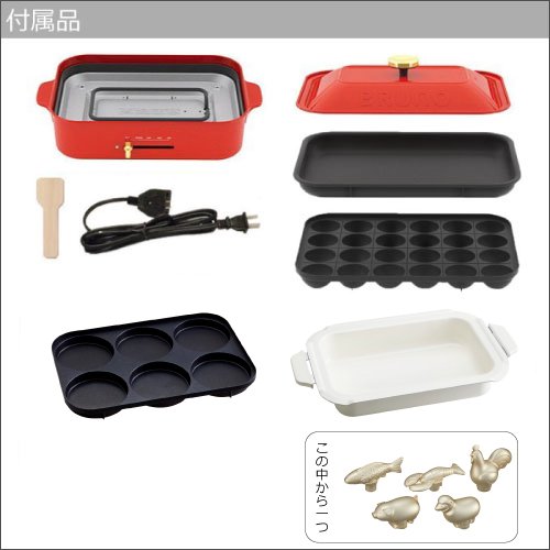 【부속품】뚜껑×1,평평함등 플레이트×1,타코야끼 플레이트×1,세라믹 코트과, 멀티 플레이트×1,데코레이션 노브,목제 스파《추라》×1