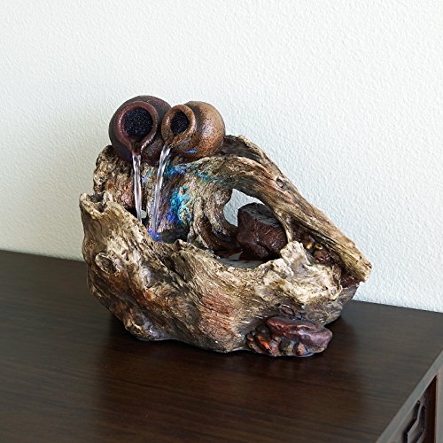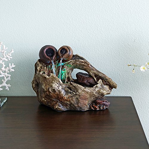 Welland 2-Pots Cascading on Tree Trunk Fountain with LED Light