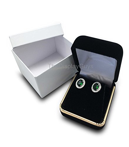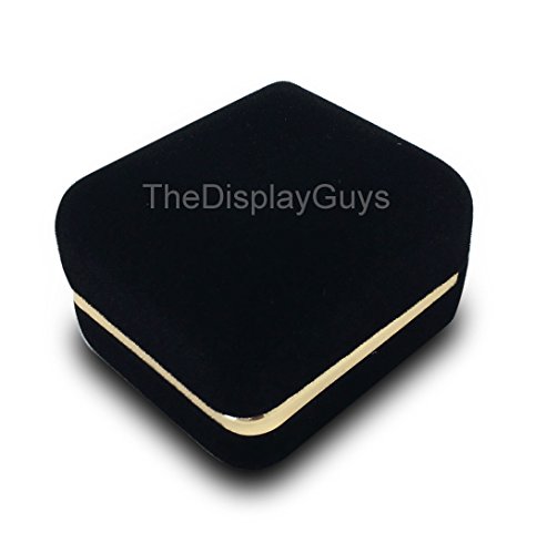 The Display Guys Deluxe Black VELVET Pendant Earring Gift Box, Jewelry Presentation Display Case with Gold Trim Metal Hinge(2 1/8x1 7/8x1 1/2 inch)
