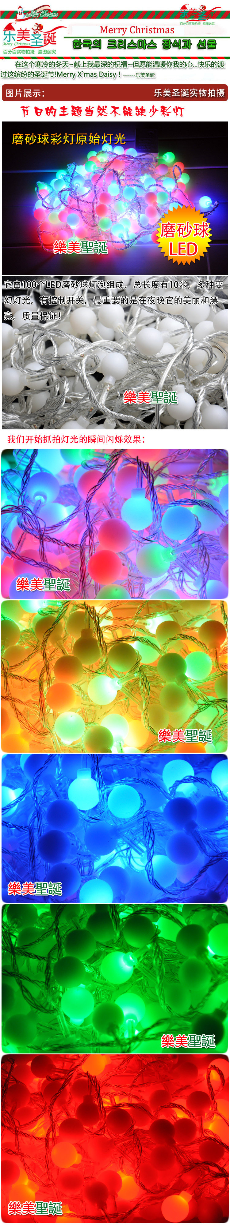 It consists of 100 LED bulb frosted ball, with a total length of 10 meters, a variety of changing lighting, control switch, the most important is its beauty and beautiful color at night
