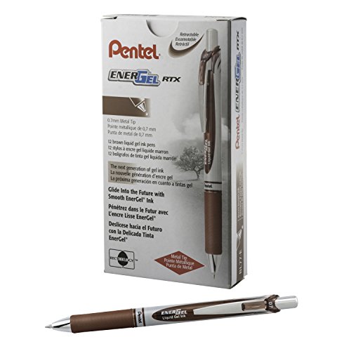 -. Title : Pentel EnerGel RTX Retractable Liquid Gel Pen, (0.7mm) Metal Tip, Medium Line, Brown Ink, 12 pack (BL77-E)