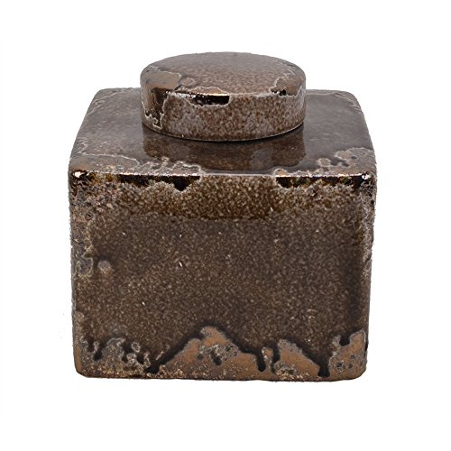 Benzara Square Shaped Decorative Ceramic Covered Jar, Dark Brown