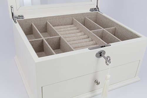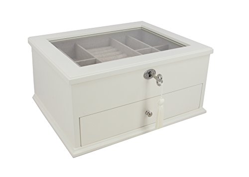 Decorebay New Glass Top Wooden Jewelry Box with lock and key (Pearl)