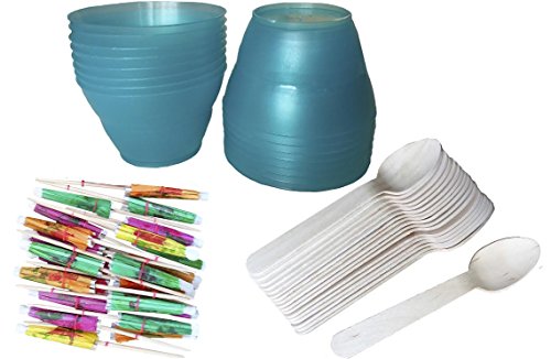 Each kit includes 16 cups, 16 paper umbrellas and 16 mini wood spoons