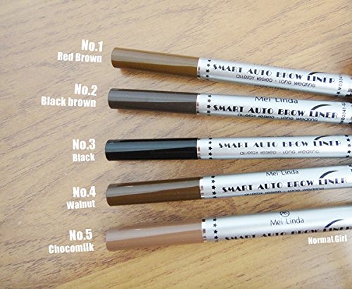-. Feature : Mei Linda Smart Auto Brow Liner Waterproof - 02 Black Brown / Eyebrow pencil smooth silk, easy to write, waterproof and long-lasting. With brush your eyebrows with help sort beautiful lines. / Easy to use, just one click, then draw eyebrows rotate pretty want, without the use of pencil sharpener.