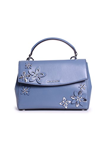 -. Title : MICHAEL Ava Small Top Handle Satchel Denim Flowers
