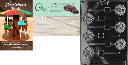 Cybrtrayd 'Flower Lolly' Fruits and Vegetables Chocolate Candy Mold with 25 4.5-Inch Lollipop Sticks and Chocolatier's Guide