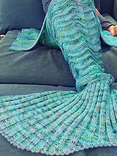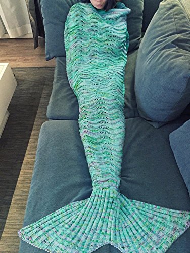 BG Cute Variegated Green Mermaid Tail Crochet Blanket All Seasons Soft Warm Sleeping Bags