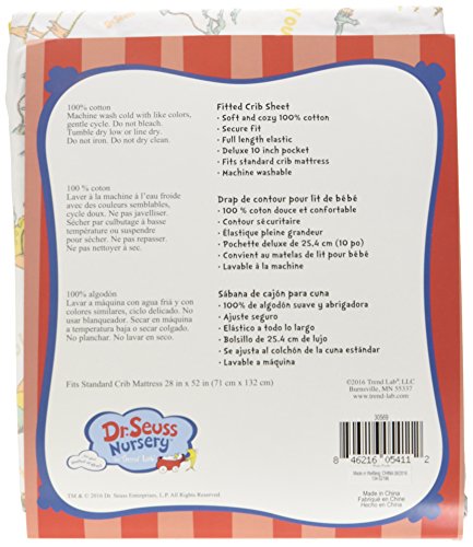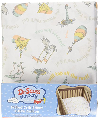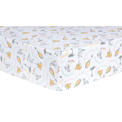 Trend Lab Dr. Seuss Oh, The Places You'll Go! Quotes Fitted Crib Sheet, Aqua/Orange/Yellow