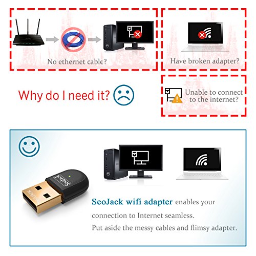 -. Binding : Electronics -. Brand : SeoJack -. EAN : 6097777629392 -. Feature : →Allows your WiFi-disabled desktop computers or laptops connect to 5G/2.4G wirelessnetworks via USB with a simple plug. Mini size for convenient movement without unpling it / →Support Windows XP / Vista / 7 / 8 / 8.1 (32/64bits) / MAC OS X 10.11.X / 10.10.X / 10.9.X / 10.8.X /10.7.X / →Dual Band (5GHz 433Mbps or 2.4GHz 150Mbps) connections for lag-free HD video streaming and gaming. Ultra-fast AC600 wireless speed with 802.11ac / →Easy to install, use drivers CD, simply plug in the wifi adapter to connect to your wifi with client mode or create a hotspot with AP mode / →PLEASE check carefully what systems it is compatible with before place the order. Any problems on setup, please CONTACT US via emails or Q&A -. Label : SeoJack -. Manufacturer : SeoJack -. Model : WS-WN691A1 -. MPN : WS-WN691A1 -. OperatingSystem : Windows XP -. PackageQuantity : 1 -. PartNumber : WS-WN691A1 -. ProductGroup : PC Accessory -. ProductTypeName : COMPUTER_COMPONENT -. Publisher : SeoJack -. Studio : SeoJack -. Title : SeoJack AC600Mbps Dual Band (5GHz and 2.4GHz) Wireless USB Wifi Adapter, For Device of Windows XP / Vista / 7 / 8 / 8.1 (32/64bits) / MAC OS X 10.11.X / 10.10.X / 10.9.X / 10.8.X /10.7.X