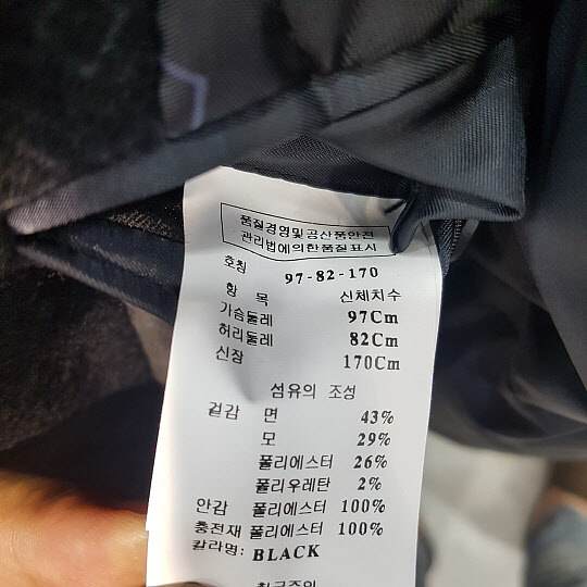 겉감:면43%울29%폴리에스터26%폴리우레탄2%