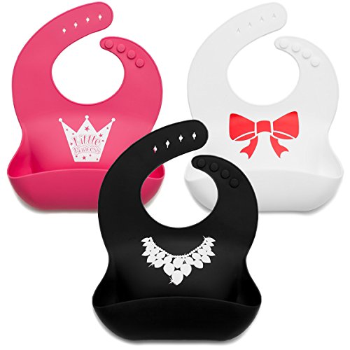 Kids N' Such Baby Bibs for Girls 3 Pack - 100% Food Grade Silicon - Waterproof with Food Catcher - Easy Clean - Anti Bacterial, Anti Microbial, Dishwasher...