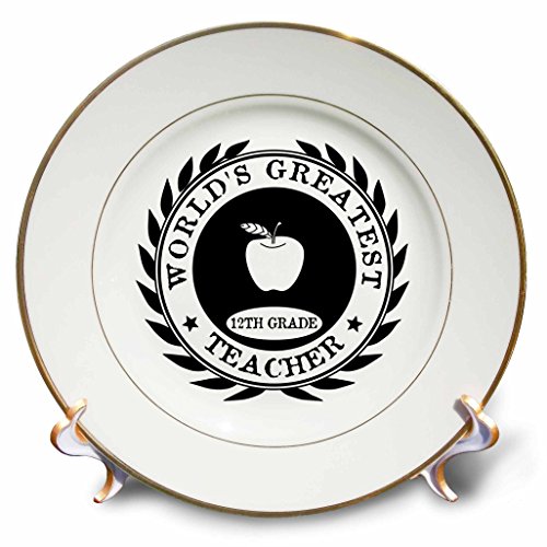 3dRose cp_165025_1 Worlds Greatest 12Th Grade Teacher Award. Grade 12 Thank You Gift-Porcelain Plate, 8-Inch