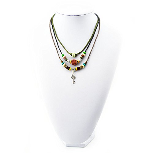- Title : Real Spark Silvery Ancient Key Pendant Accessory Multcolor beads Chain Necklace 3 Strand Set