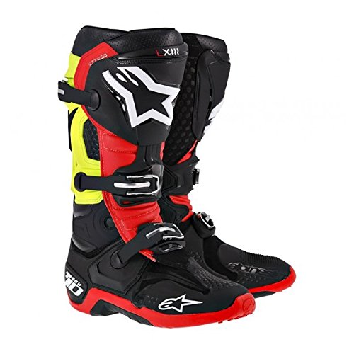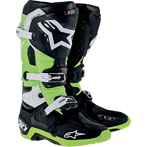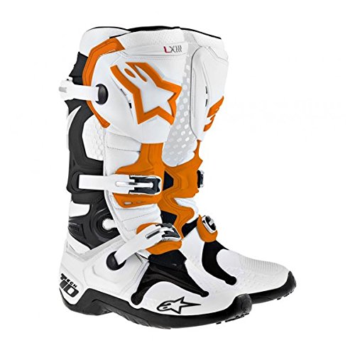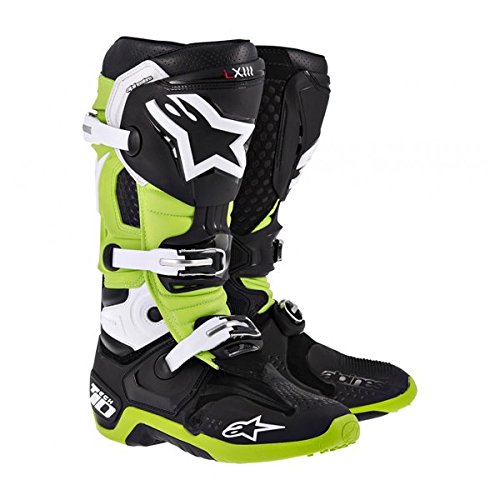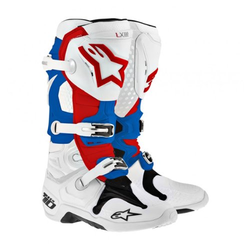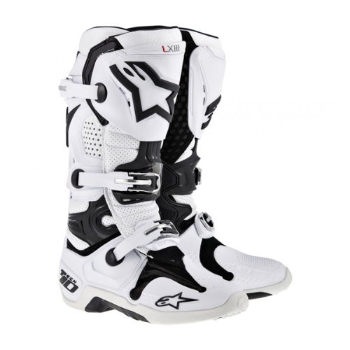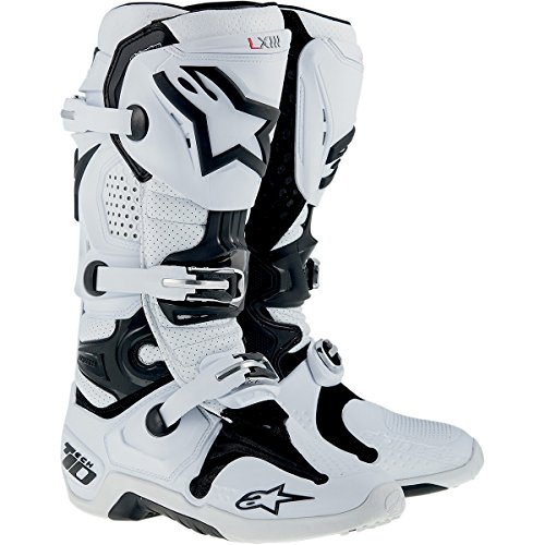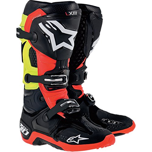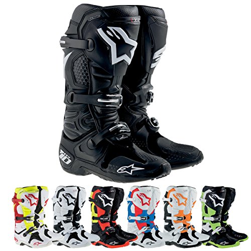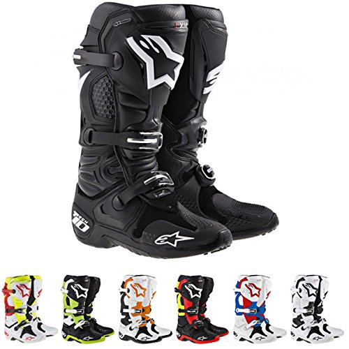 Studio : Alpinestars Publisher : Alpinestars Product Description Alpinestars Tech 10 Boots The Alpinestars Tech 10 redefined. Lighter, thinner and more race focused than ever before, the newly revised Tech 10 boot returns to conquer motocross one more time. Directing their energy at weight reduction and improving the buckling system, Alpinestars has made huge strides in the overall feel, comfort and closure. The new hook and lock buckle system is alone worth experiencing and can confidently claim the title as the easiest and more secure system out there. Additionally, a more flexible sole and thinner bootie gives outstanding bike and pedal feel. Already race tested by Ryan Villopoto, Eli Tomac and Justin Barcia, the Tech 10 is fully proven and built to impress. Lightweight upper combines full-grain leather with lightweight microfiber and impact and abrasion resistant TPU shell Innovative, evolutionary TPU shin-plate construction for greater range of fitment features a reinforced Velcro brand closure for comfortable, highly customized closure Shin zone incorporates TPU blade system engineered to prevent frontal hyperextension and provides greater flex control Evolutionary design for lateral flex zone provides front and rear flexion support and helps prevents torsion Medial-facing panel constructed from TPU with rubber insert for maximum grip contact with bike and improved heat and abrasion resistance Contoured TPU calf protector plate offers impact resistance Innovative TPU rear blade system protects heel and features a rear hyperextension guard Extensive TPU protection on toes, foot, heel, ankle, calf and shin with extra hard compounds on the toe-box, heel and Achilles tendon New closure system includes polymer buckles plus aluminum frame with innovative self-aligning, quick release closures for customized secure fitment TPU lower shell is reinforced with metal shank and includes toe reinforcement for impact and abrasion resistance All the buckles are replaceable Soft microfiber gaiter help 0