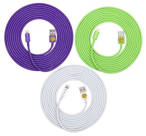 3PCS of HEAVY-DUTY Lightning to USB Sync Charger Data Cable Cord 10ft / 3m for iPhone 5s / 5c / 5, iPhone 6 / 6plus, ipad Air / Mini / iPod Touch 5 and Nano 7 - (purple green white)