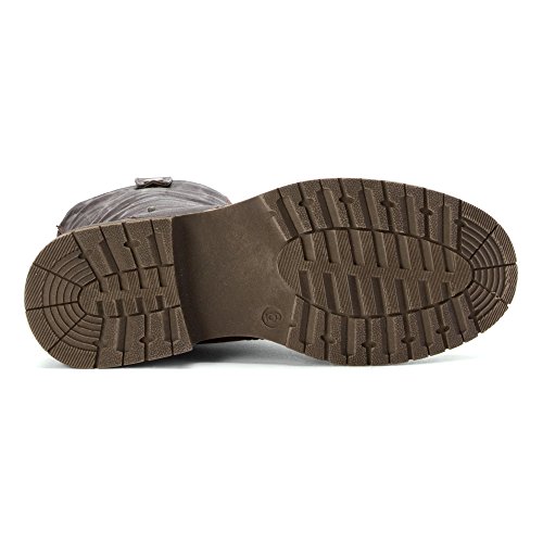 Product DescriptionMilitary bootie with lace up front and sweater lining. Fold down with snaps, fleece lined below, lug sole.0