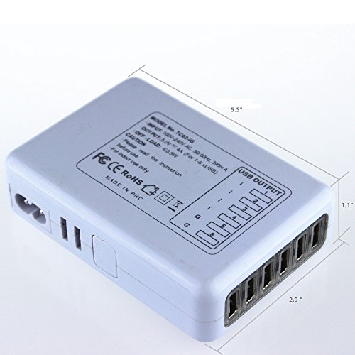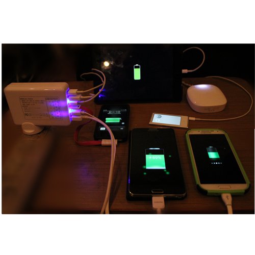 Support charging 6 USB supported devices at the same time. 5V4A: using 1 USB port. 5V2A: using 2 USB ports. 5V1.3A: using 3 USB ports. 5V1A: using 4 USB ports. 5V0.8A: using 5 USB ports. 5V0.66A: using 6 USB ports.
