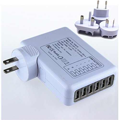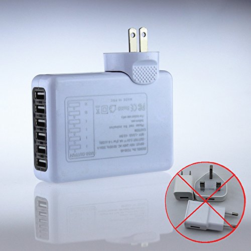 In order to use the 6-port USB charger world-widely, we offer four different standard plugs come with package (American, British, European, Australian standards). Just one charger and four plugs can take you travel around world more easier than before.