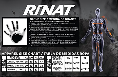 Studio : Rinat Publisher : Rinat Binding : Misc. Product Description The Finger protection version of he iconic model to the Rinat brand that has been redesigned and evolved, not only aesthetic change also in its construction and is now more comfortable and adjusts better to the hand. Backhand: Latex high volume embossment to provide cushioning and body to the glove, Backhand: synthetic material with high-frecuency embossing to provided volume, body and cushioning. It has plastic-spines on the fingers that protect and strengthen and reduce the risk of injury. All mounted on highly breathable textile mesh. Cut: Hybrid, which is a variant of cutting ergo-roll, index and pinky are Rollfinger and middle fingers are flat and ergonomic. Latex: Duo grip (double palm). The inner layer of latex adheres and fits the hand like a second skin thus avoiding the glove to move from its place which is extremely comfortable. It is made whith a latex that offers high performance, excellent grip and cushioning. It is one of the most reputable latex and orders among the Goalkeepers, it has decorative engravings on the palm that does not reduce in the least its gripping properties. Application of external sides with synthetic latex (Side Shield ®) which protects the outer side latex wear caused by friction in the dives. Wrapped Thumb: Latex almost completely surrounds the big toe in order to have greater holding area. Closure: Wrist strap elastic adjustable headband held by a composite textile and latex, which covers the inside of the wrist to function outstretched palm. 0