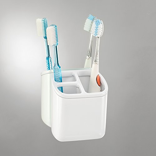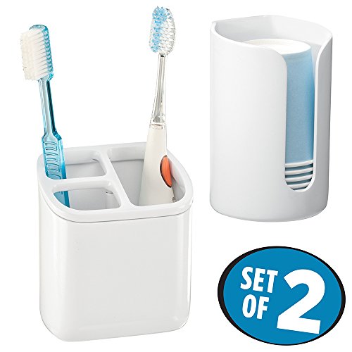 mDesign AFFIXX, Peel and Stick Strong Self-Adhesive Toothbrush Holder and Disposable Cup Dispenser for Bathroom - Set of 2, White